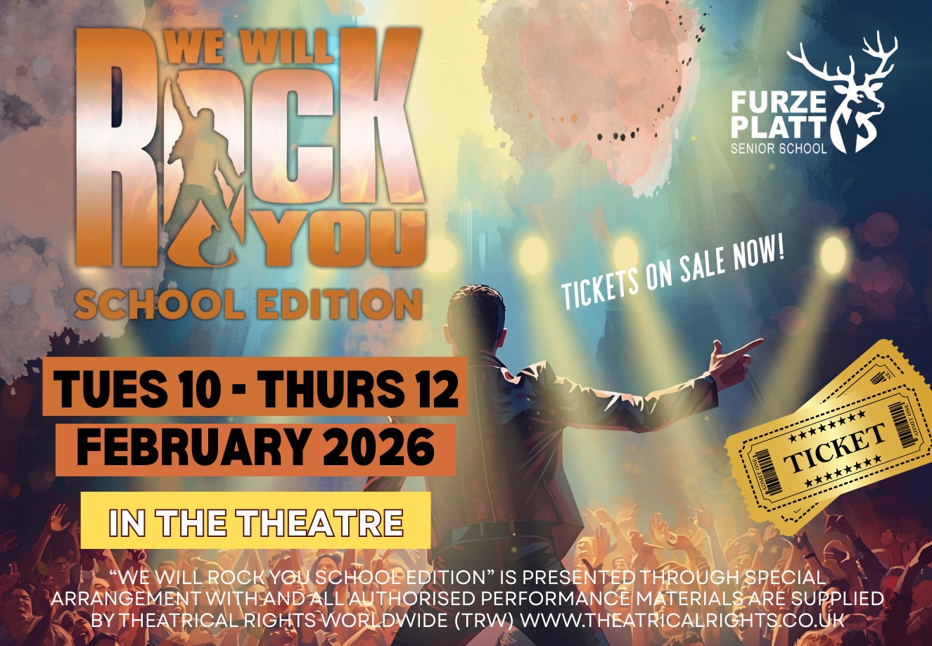 Our talented students would like to invite you to this year's production of 'We Will Rock You' in February - a high energy, feel-good musical that celebrates individuality and the power of live music, set to the iconic songs of Queen. Picture a dystopian future, where originality, free thought, self-expression and live rock music are forbidden. How will the Bohemians, a rebellious group of young people, change this world? Dare they believe that music holds the power?